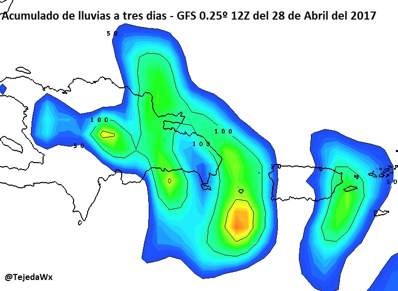 mapa de acumulación de lluvias de 3 dias en republica dominicana