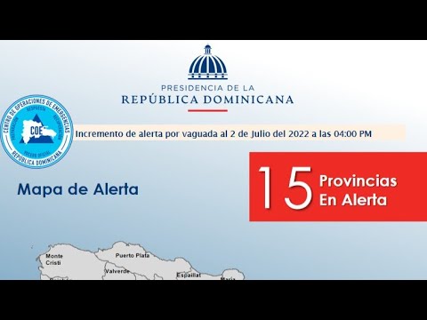 Martes 07 de agosto del 2012 a las 6:00 p.m. Válido hasta el jueves 9 de agosto del 2012 a las 6:00 p.m.  VAGUADA Y ONDA TROPICAL INCIDIENDO SOBRE EL AREA DEL CARIBE... TEMPERATURAS CALUROSAS     La vaguada en altura unido a los efectos locales de convección y orografía, asi como la incidencia de una onda tropical mantendrán las condiciones de inestabilidad en la masa de aire que nos cubre para seguir provocando aguaceros dispersos con  tronadas y ocasionales ráfagas de viento hacia las regiones noreste, sureste, suroeste, cordillera Central y zona fronteriza, principalmente en horas de la tarde. Esta onda tropical, que en estos momentos se ubica sobre la isla de Puerto Rico, se mueve hacia el oeste a unos 18 kph y penetrara nuestro territorio en el dia de mañana.  Las temperaturas seguirán calurosas durante el día sobre nuestro territorio, debido a la época del año (verano), siendo ligeramente agradables en horas de la noch...